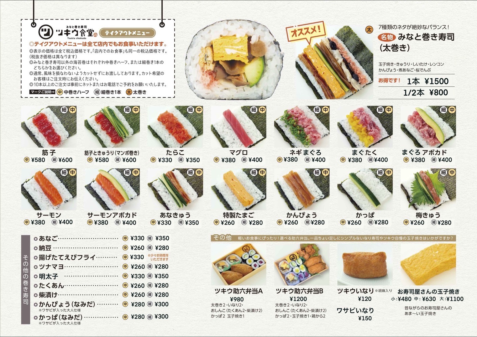 ※すべての巻き寿司メニューはワサビ抜きです。(別途お付けいたします)